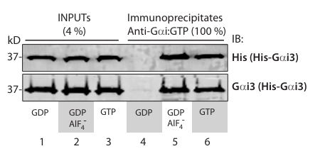 Anti-Gαi:GTP antibody recognizes Gαi3 in active conformation in immunoprecipitation assays.
