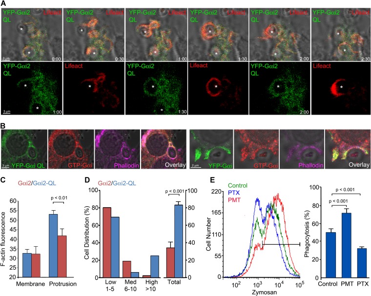 For immunoprecipitation of active Gαi3, freshly prepared cell lysates (2-4 mg) were incubated for 30 min at 4°C with the conformational Gαi3:GTP mouse antibody (1 μg; Lane et al., 2008) or preimmune control mouse IgG. Protein G-Sepharose beads (GE Healthcare) were added and incubated at 4°C for additional 30 min (total duration of assay is 1 h). Beads were immediately washed three times using 1 ml of lysis buffer (composition exactly as before; no nucleotides added), and immune complexes were eluted by boiling in SDS as previously described (Ghosh et al., 2010).