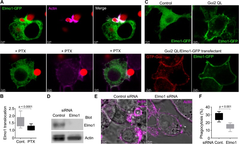 (G) Schematic on top shows the assay used for assessing the extent of Gαi-activation using conformation-sensitive antibodies that selectively bind the GTP-bound (active) conformation of Gαi protein. Immunoblots below show the active Gαi immunoprecipitated (top; IP) from lysates (bottom) of HeLa cells treated with Dox. for the indicated time points.