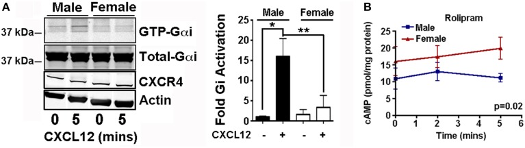 RAW 264.7 cells were stimulated with LPS (500ng/ml, ultra pure LPS from Escherichia coli O111:B4, List Laboratories, Campbell, CA) for various periods of time. Activated Gαi protein was immunoprecipitated with a Gαi protein activation assay kit (New East Biosciences, Malvern PA). Briefly, cells were lysed with lysis buffer provided in the kit and Gαi-GTP complex was immunoprecipitated with an antibody that specifically bound to the Gαi-GTP complex. The immunoprecipitated proteins were subjected to Western blot with anti-Gαi protein antibody.