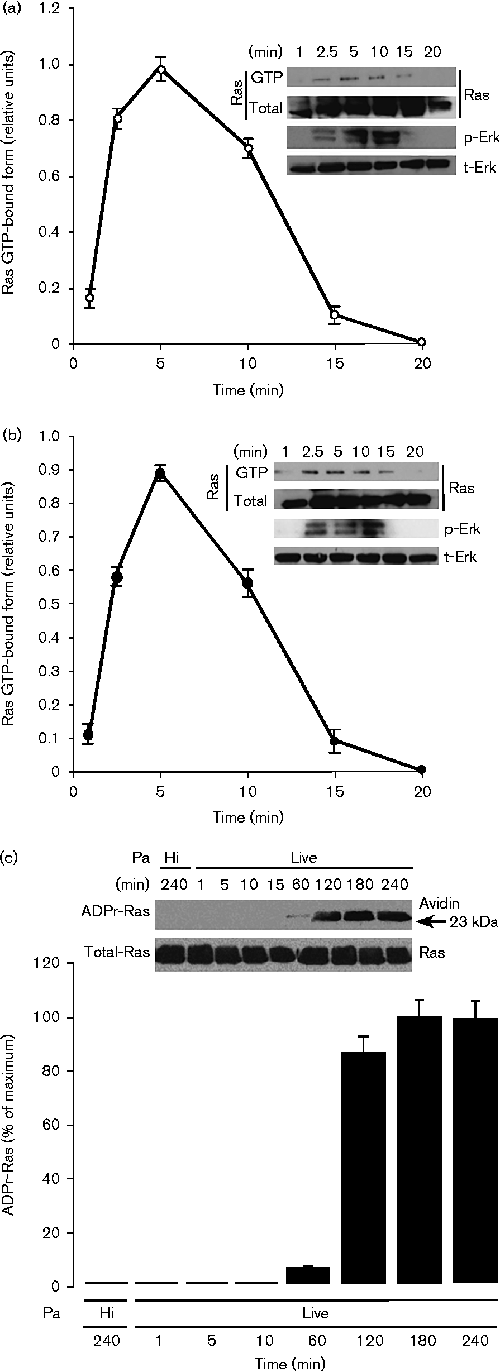 A Ras activation kit (Cell Signalling) was used to assay for active Ras. Briefly, macrophages were seeded at 1 × 108 cells ml− 1 and phagocytosis was activated as described before. Macrophages were then lysed with lysis buffer (Cell Signalling) according to the vendor’s instructions. One millilitre of lysate was incubated with Raf1-RBD agarose bead slurry (Cell Signalling) for 1 h at 4 °C, and then the beads were pelleted and washed before carrying out immunoblotting using rabbit polyclonal anti-Ras antibody (Cell Signalling). The positive control for this experiment was GTPγS-treated macrophage lysates and the negative control was GDP-treated macrophage lysates prepared as per the vendor’s instructions.