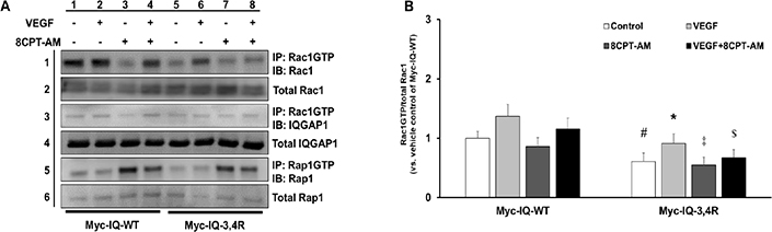 Active Rap1 binding the IQ domain of IQGAP1 is necessary to reduce VEGF-induced Rac1 activation in CECs.