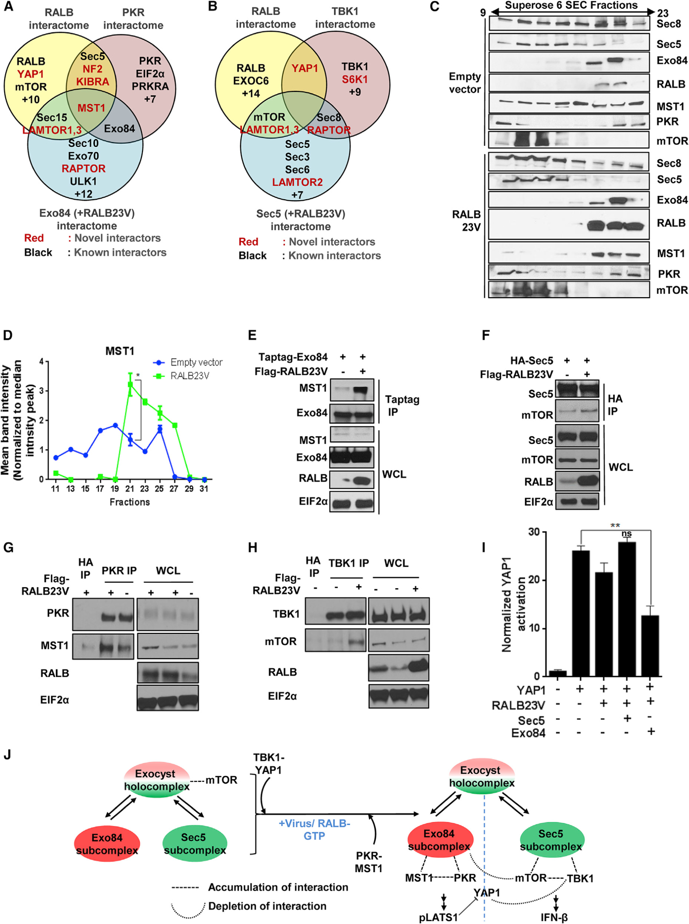 RALB drives formation of Exo84/PKR/MST1 and Sec5/TBK1/mTOR complexes