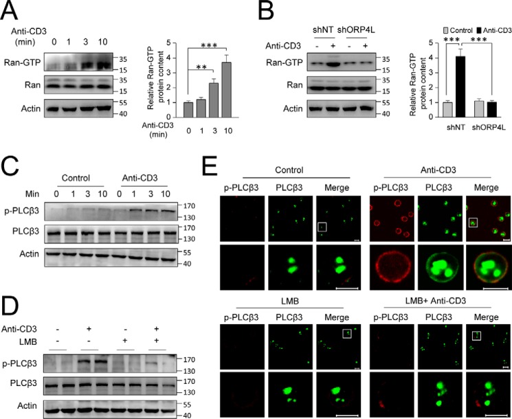 Anti-CD3 stimulation activates RAN for PLCβ3 exportation from the nucleus in Jurkat T-cells.