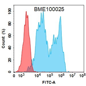 ![]() Figure 1. Flow cytometry analysis with 2 µg/mL Anti-CD20 (rituximab biosimilar) mAb (28034) on Expi293 cells transfected with Human CD20 protein (Blue histogram) or Expi293 transfected with irrelevant protein (Red histogram). antibody. |